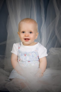 Rebekah seems to be on track for crawling soon, too. Right now she is doing some crawling--not the hands and knees type crawl but more of the scooting around. However, she can only crawl backwards, kind of like the baby moonwalk. She'll start rocking her legs and kicking them like crazy, then push herself way up while on her tummy that inevitably moves her backwards as she mimics a rocking ship or something.